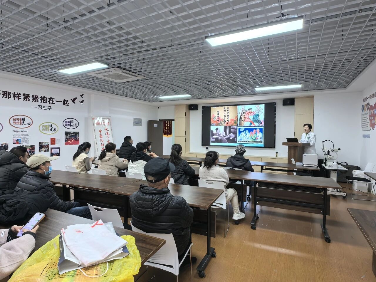 活动现场,九三学社社员、济南市第二人民医院白内障科主任医师王晶为社区居民带来了题为“呵护心灵之窗,关注中老年眼保健”科普讲座。王晶用通俗易懂的语言,深入浅出地讲解了白内障、青光眼、黄斑变性等老年人常见眼科疾病的预防、早期识别和治疗方法。她特别强调了定期眼部检查的重要性,提醒中老年人要养成良好的用眼习惯,出现视力模糊、眼痛、视物变形等症状时应及时就医。