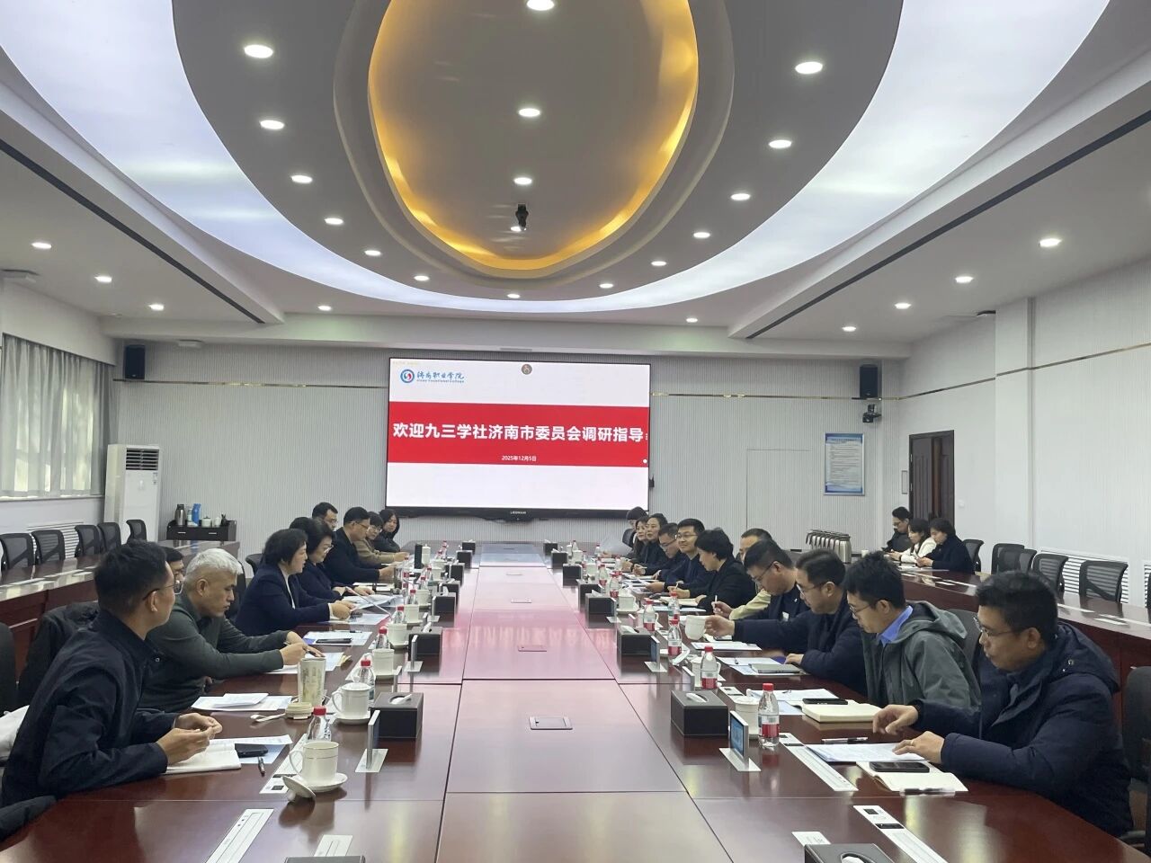 为进一步激发我市产教融合活力,让职业教育与产业发展同频共振,12月5日,市政协副主席、九三学社济南市委会主委、市行政审批服务局局长刘霞带队赴济南职业学院开展职业教育赋能产业升级路径与成效的调研。中共历城区委常委、宣传部部长、统战部部长张良通,济南职业学院党委副书记、院长尹元华,九三学社济南市委会专职副主委赵宁、秘书长翁向勇参加活动。
